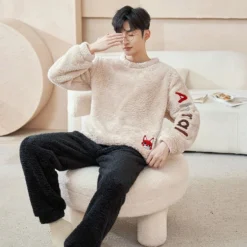 Voici le Pyjama Couple Hiver en Pilou Bleu et Rose, pour vous et votre moment cocooning !