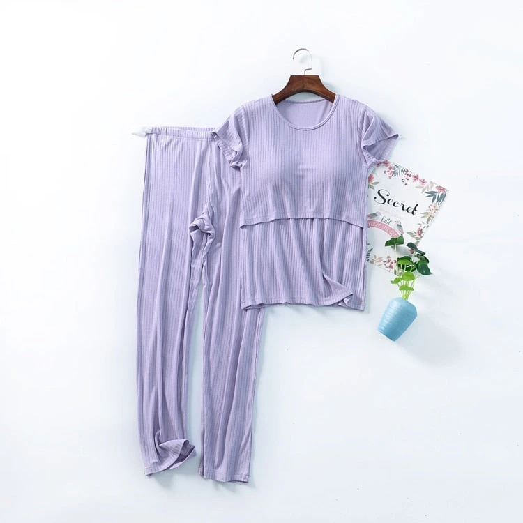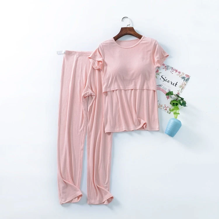 Essayez ce joli Pyjama de Grossesse et d’Allaitement Manches Courtes pour vous faciliter la tâche !