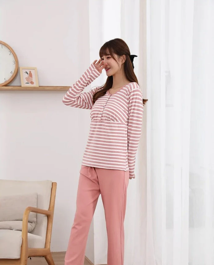 Soyez à votre aise dans ce Pyjama Grossesse Coton Rayé Manche Longue très stylé !